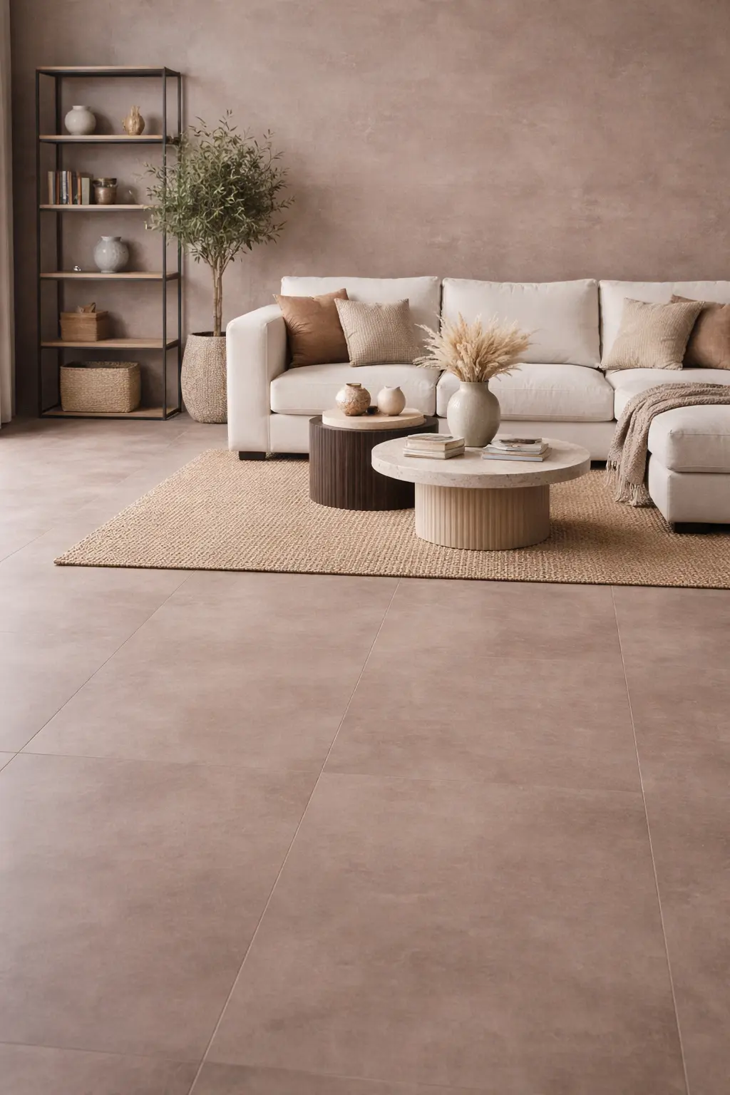 Arctec Marrone 60×120 is een rechthoekige betonlook tegel met een subtiel gewolkte structuur in warme marron tint. Het grote formaat zorgt voor een rustige, ruimtelijke look met weinig voegen, waardoor de vloer strak oogt en toch sfeervol blijft.