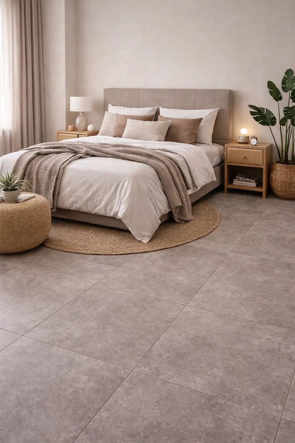 De Arena Taupe 45×45 is een keramische vloertegel met een verfijnde natuursteenstructuur en een warme taupekleur, waarin zachte beige- en grijstinten harmonieus samenkomen. Deze uitgebalanceerde tint geeft de tegel een natuurlijke en uitnodigende uitstraling, zonder zwaar of donker te ogen.