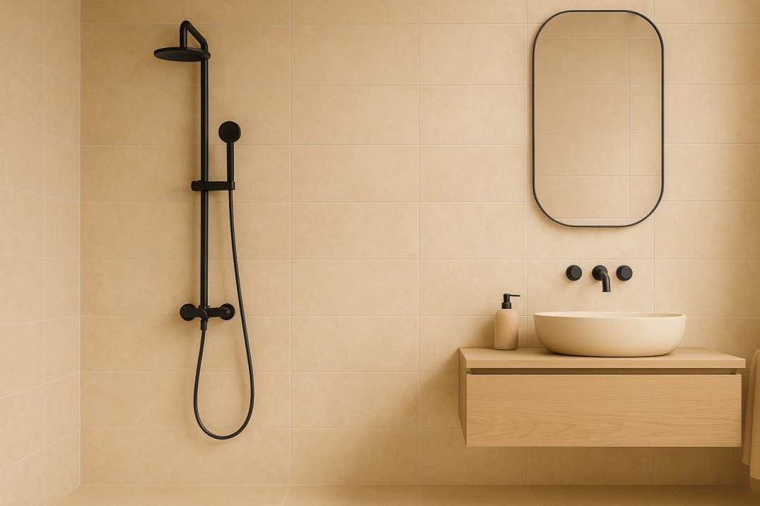 De lichte beige kleur past bijzonder goed bij zowel moderne zwarte kranen als traditionele chromen afwerkingen. Ook in combinatie met houtaccenten komt deze tegel prachtig tot leven.