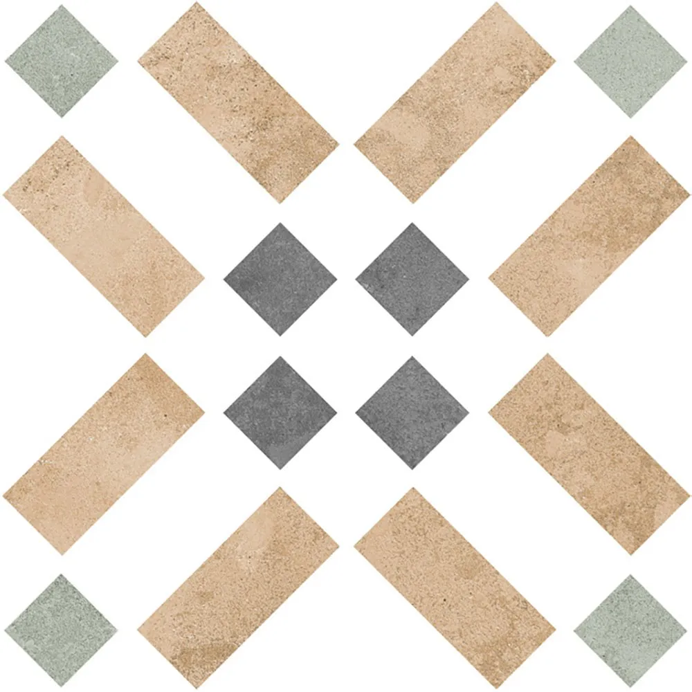 De Cosmopolitan Dublin 15×15 brengt een vrolijke en authentieke sfeer in je interieur. Het unieke mozaïekpatroon combineert warme zandtinten met koele grijs- en groentinten, wat zorgt voor een frisse, levendige uitstraling.