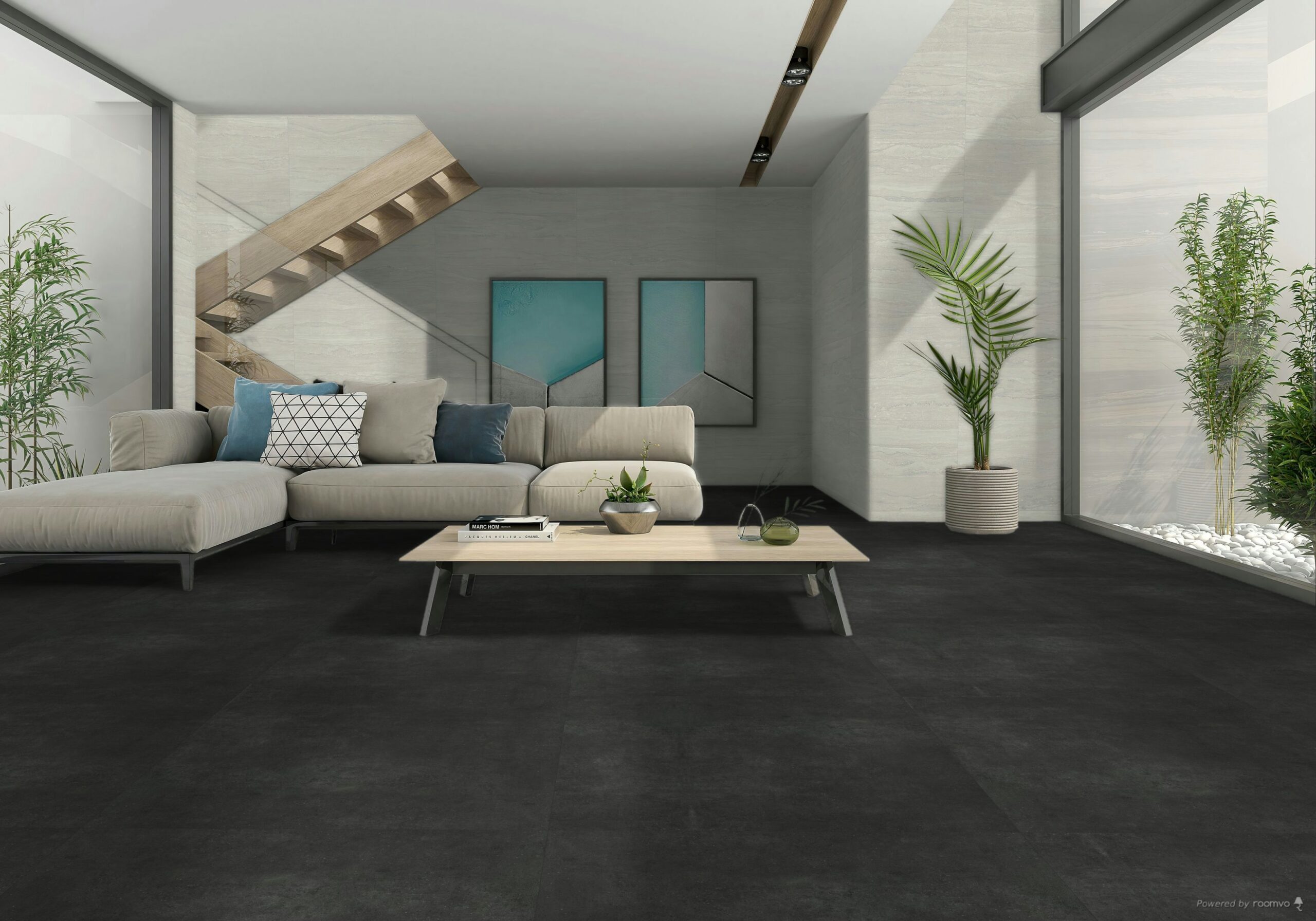 De zwarte tint oogt krachtig maar verfijnd en behoudt een natuurlijke uitstraling dankzij de matte afwerking. Hierdoor past deze tegel perfect binnen hedendaagse interieurtrends zoals modern minimalisme, industriële architectuur en luxe designconcepten.