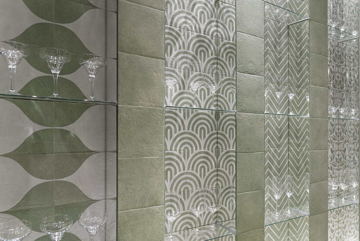 Green Garden Decor Three kan gebruikt worden als statement-tegel, maar komt ook prachtig tot zijn recht in combinatie met de andere decorvarianten uit dezelfde serie. Door verschillende patronen te mixen, creëer je een uniek patchwork dat zowel speels als verfijnd oogt.