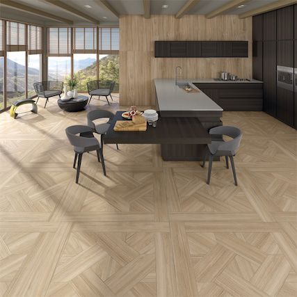 De Krabi Natural 120×120 van Vives Cerámica is een opvallende houtlooktegel die het gevoel van luxueus parket perfect nabootst.