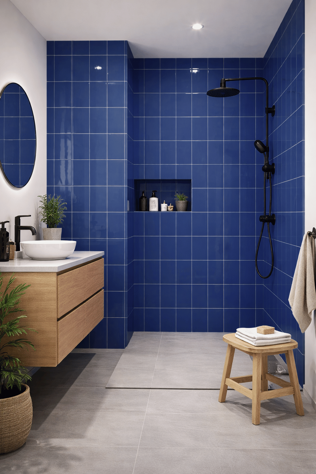 De Wavy Blue 20×25 wandtegel is een echte eyecatcher voor wie durft te kiezen voor kleur. De diepe donkerblauwe tint, gecombineerd met een licht golvend oppervlak en glanzende afwerking, zorgt voor een levendig en luxueus effect dat sterk verandert met het licht.